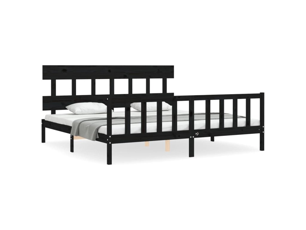 Rám postele s čelem černý 200 x 200 cm masivní dřevo 3193360