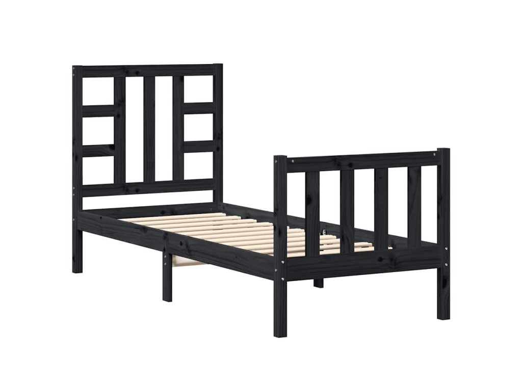 Rám postele s čelem černý Small Single masivní dřevo 3191935