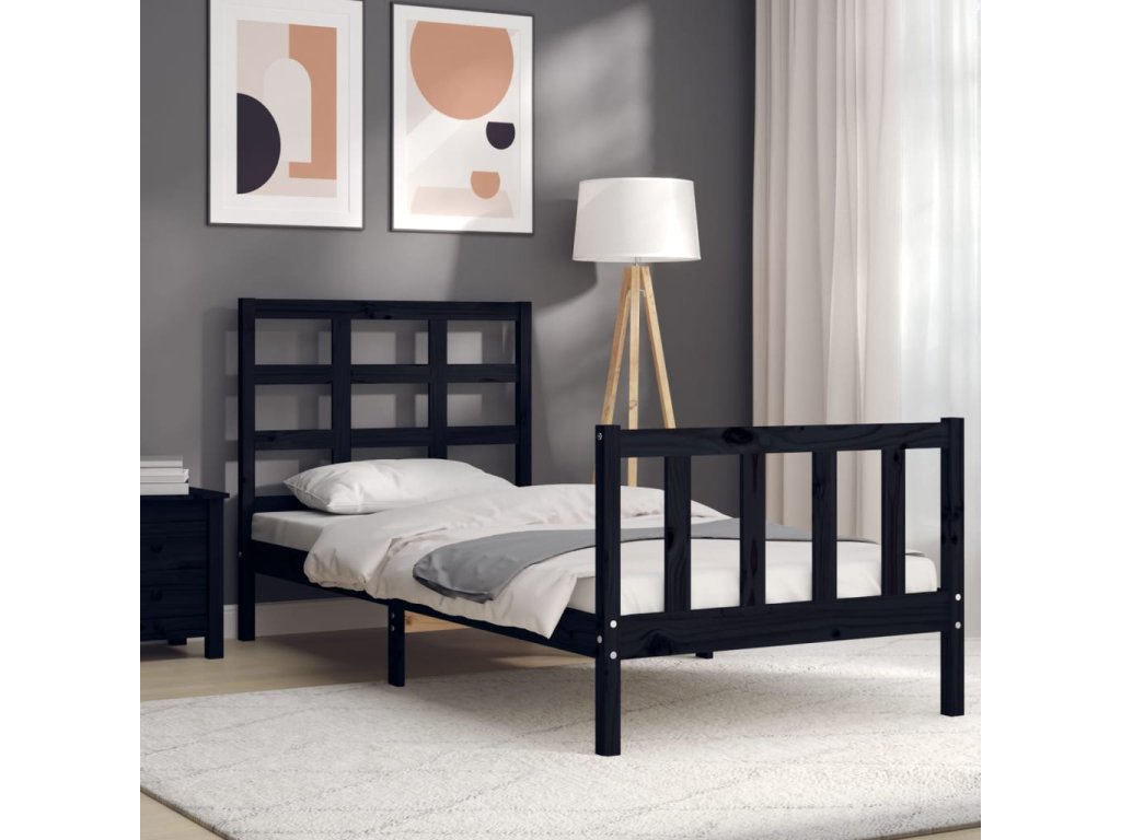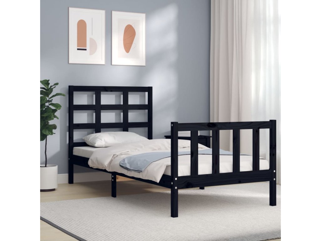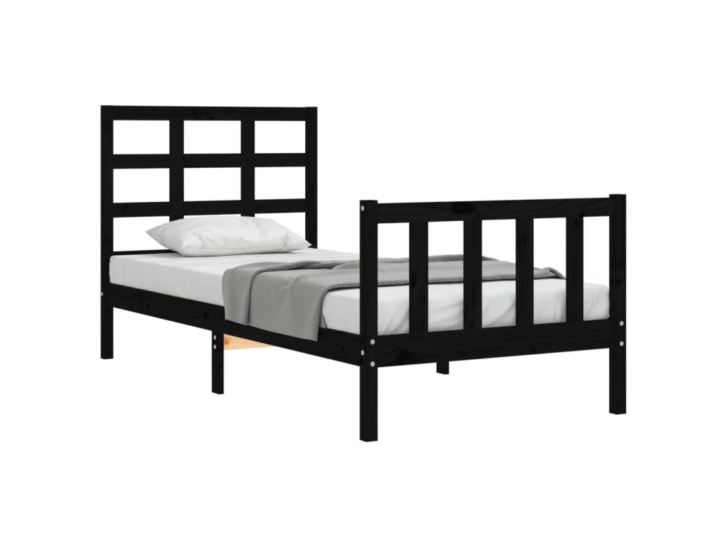 Rám postele s čelem černý Small Single masivní dřevo 3192065