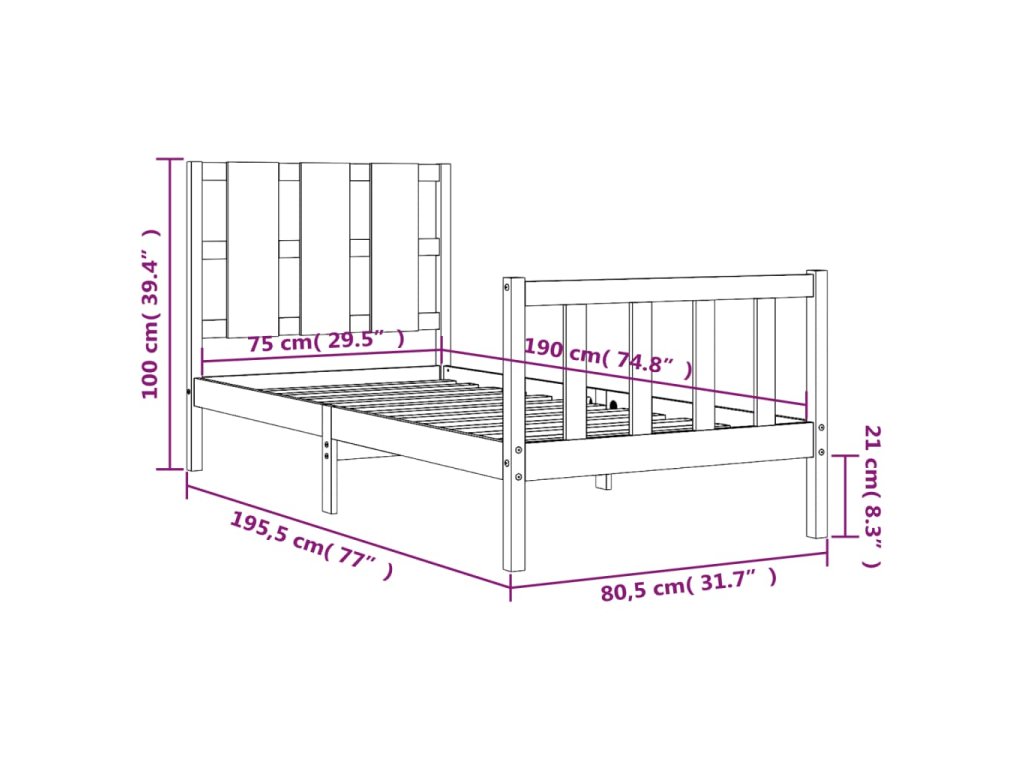 - Celkové rozměry postele: 195,5 x 80,5 x 100 cm (D x Š x V)