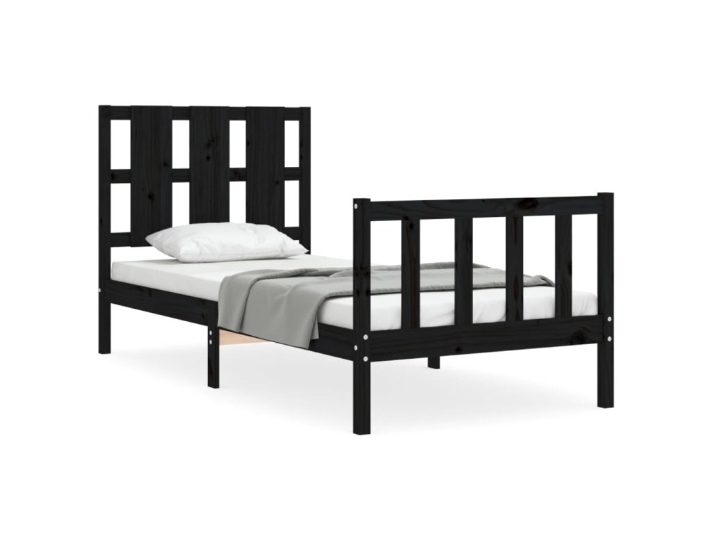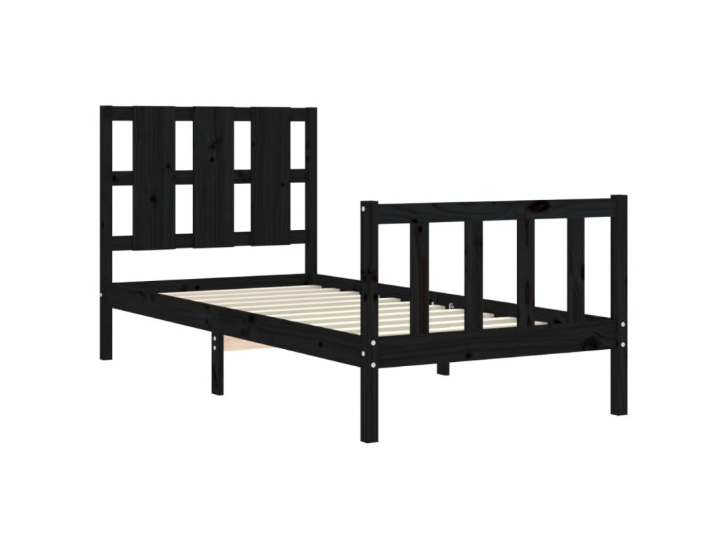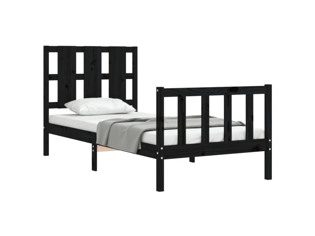 Rám postele s čelem černý Small Single masivní dřevo 3192195