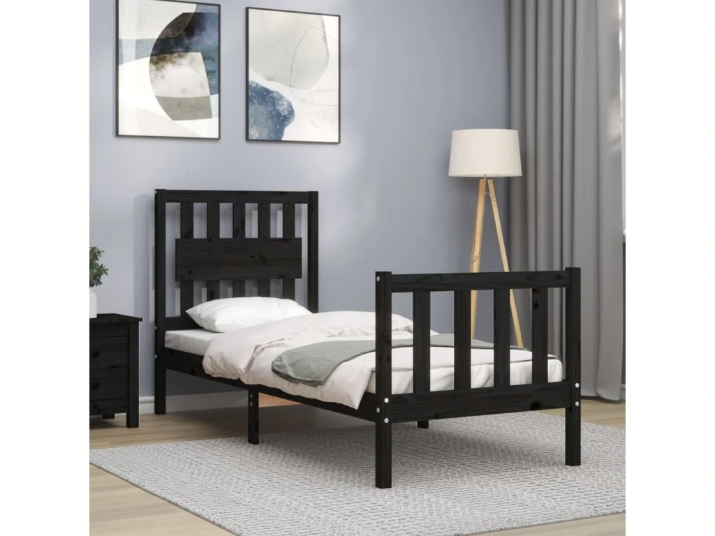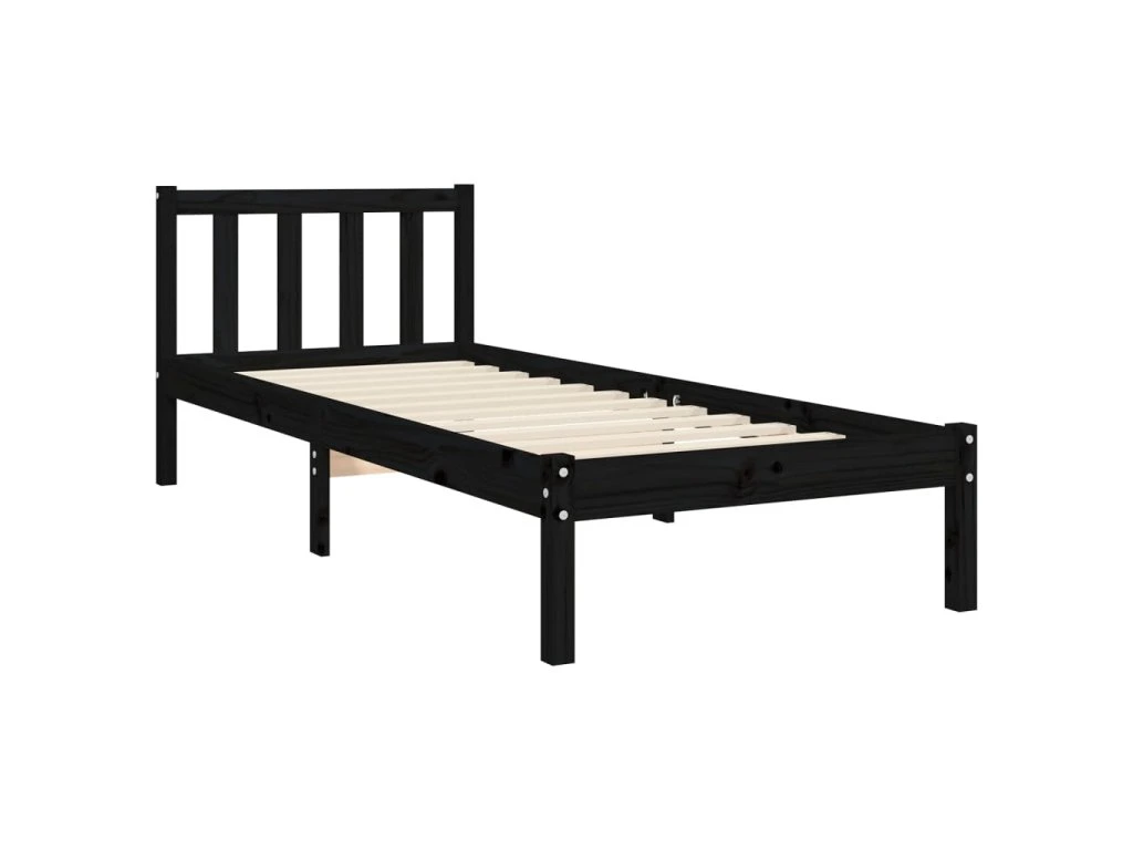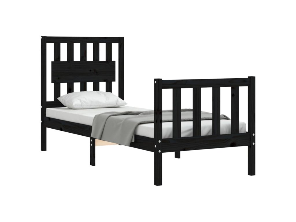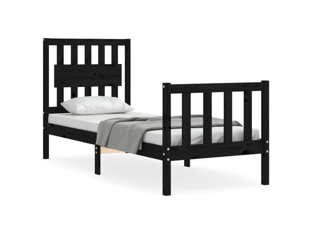 Rám postele s čelem černý Small Single masivní dřevo 3192390