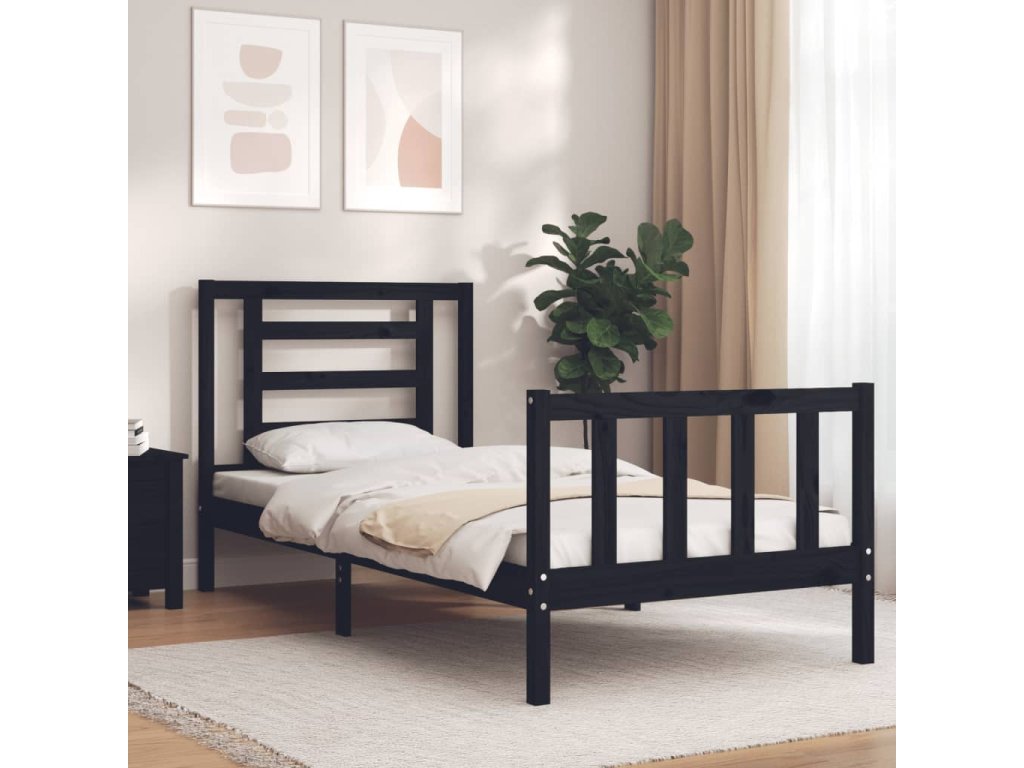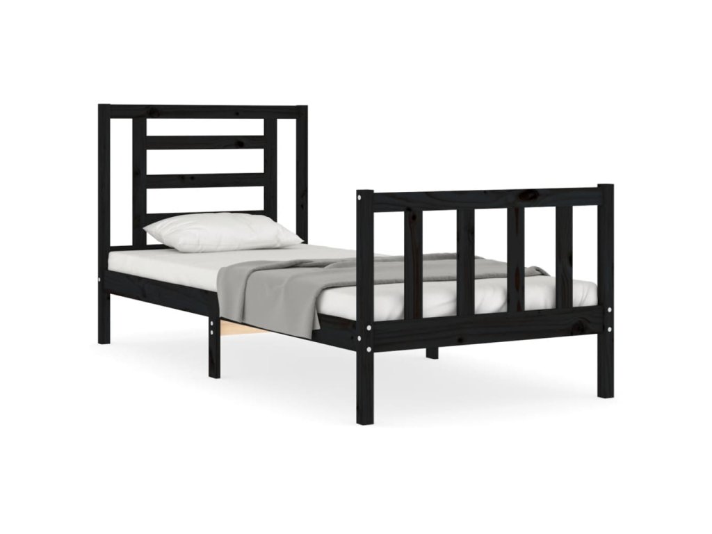 Rám postele s čelem černý Small Single masivní dřevo 3192845