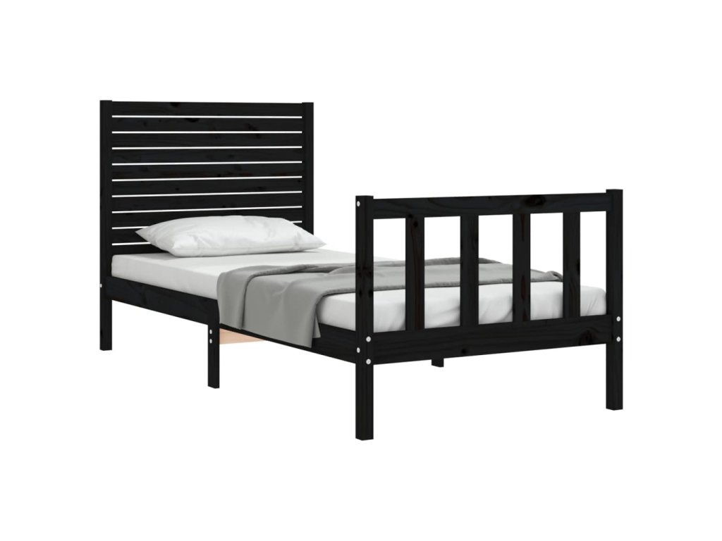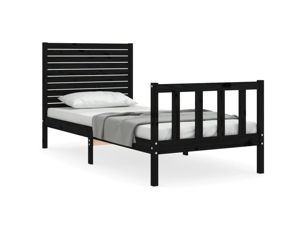 Rám postele s čelem černý Small Single masivní dřevo 3193170