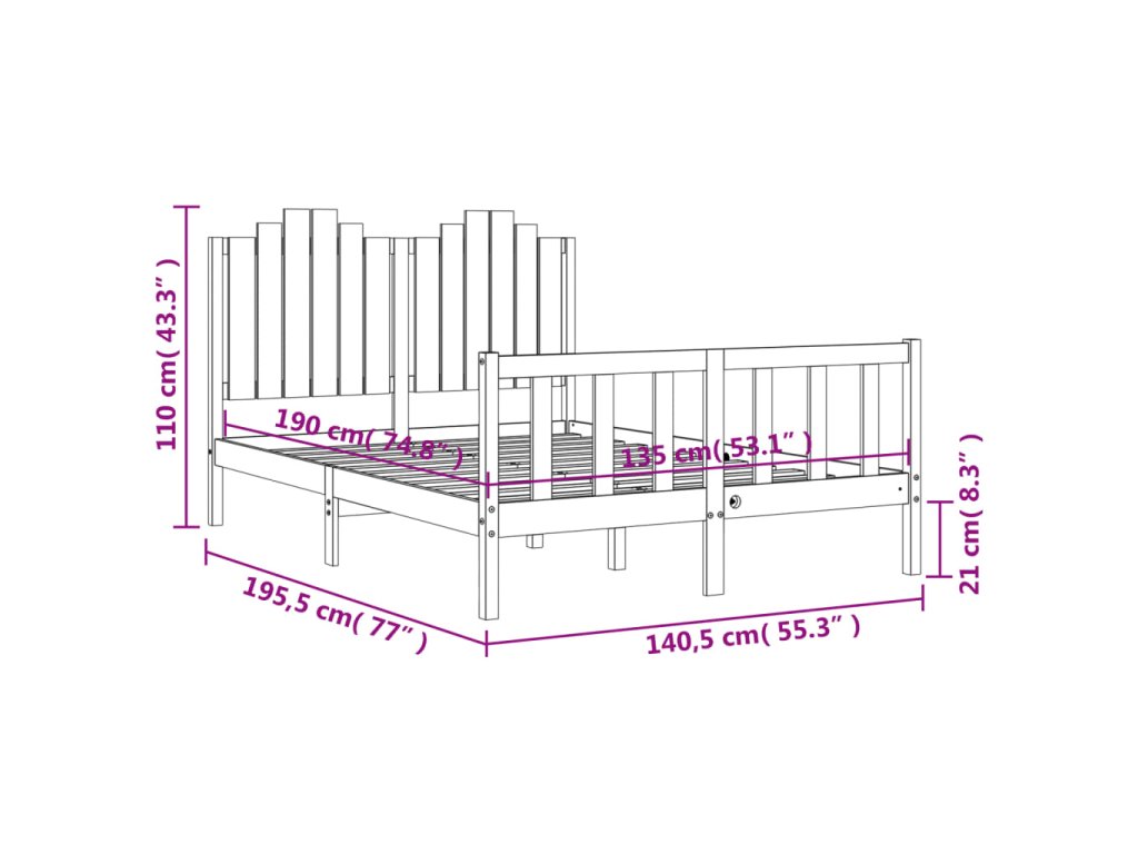 - Celkové rozměry postele: 195,5 x 140,5 x 110 cm (D x Š x V)