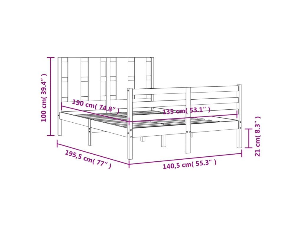 - Celkové rozměry postele: 195,5 x 140,5 x 100 cm (D x Š x V)