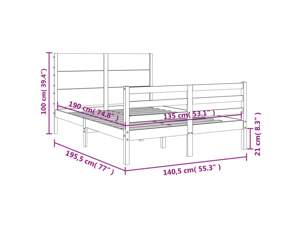 - Celkové rozměry postele: 195,5 x 140,5 x 100 cm (D x Š x V)