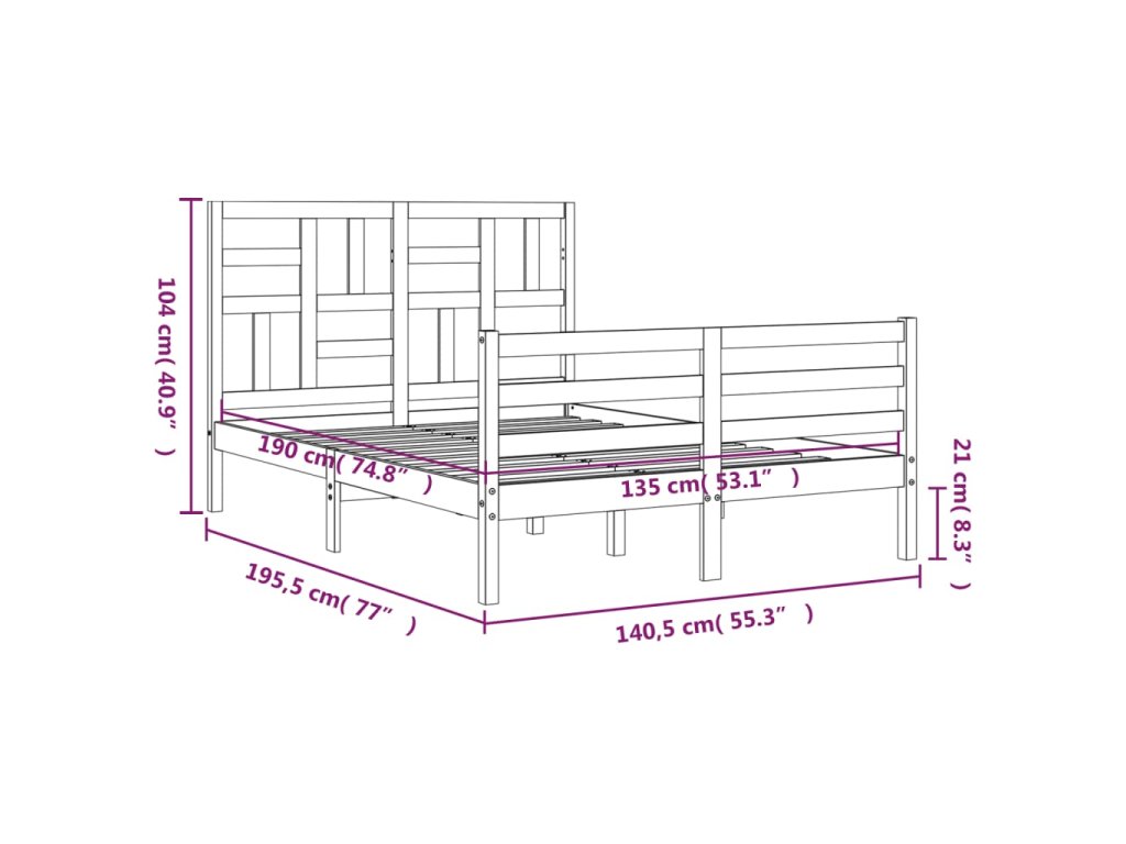 - Celkové rozměry postele: 195,5 x 140,5 x 104 cm (D x Š x V)