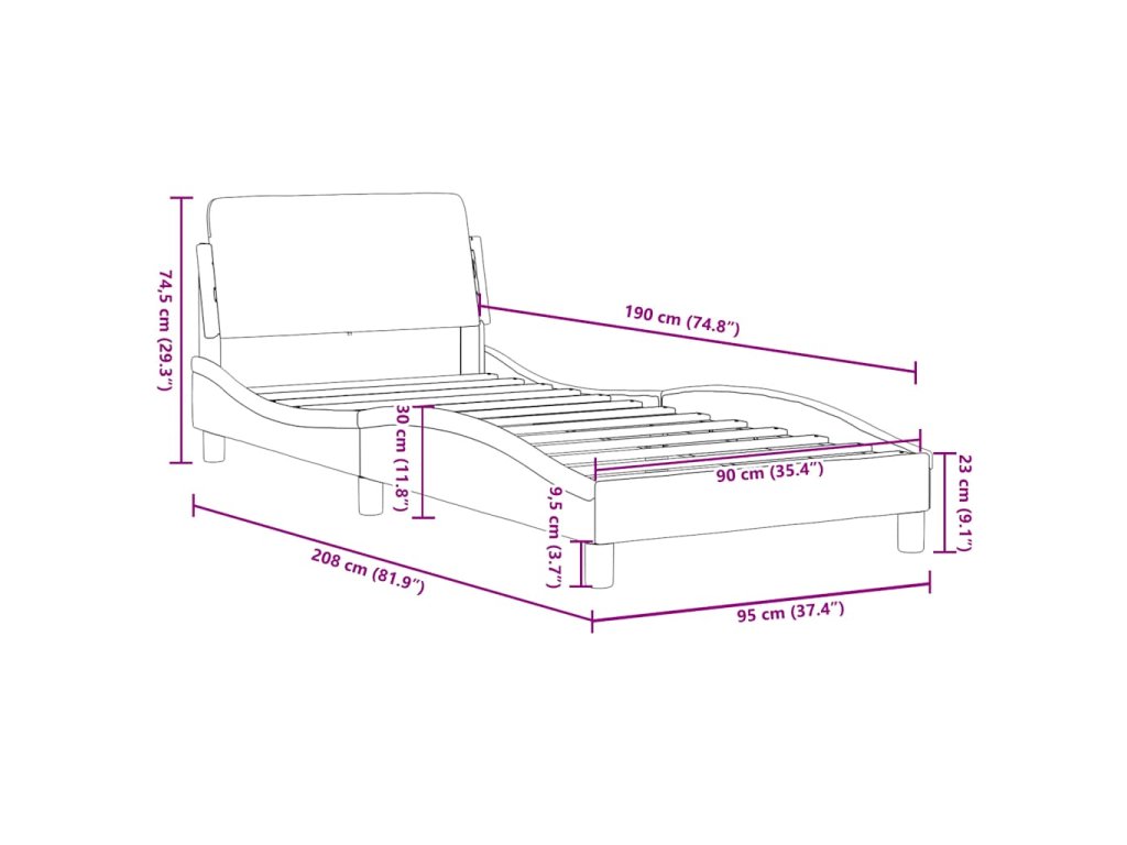 - Celkové rozměry: 208 x 95 x 74,5 cm (D x Š x V)