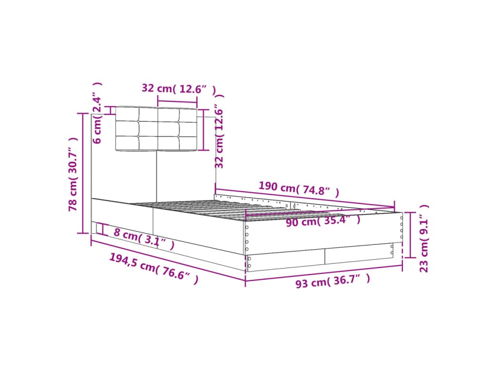 Rám postele s čelem dub sonoma 90 x 190 cm kompozitní dřevo 3209970