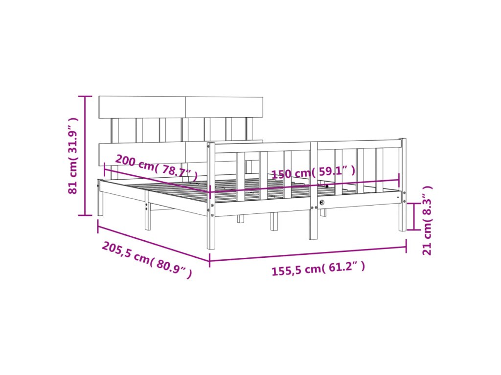 - Celkové rozměry postele: 205,5 x 155,5 x 81 cm (D x Š x V)