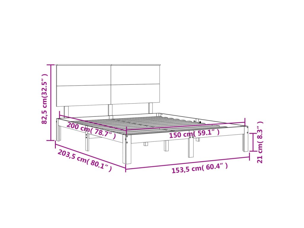 - Celkové rozměry postele: 203,5 x 153,5 x 82,5 cm (D x Š x V)