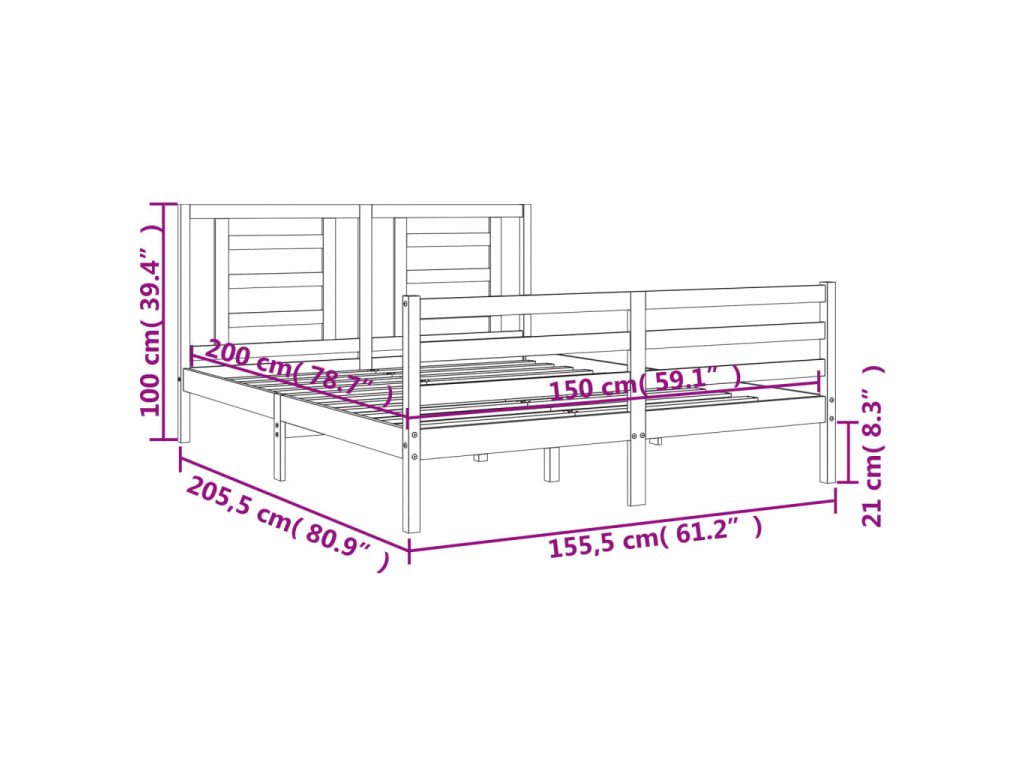 - Celkové rozměry postele: 205,5 x 155,5 x 100 cm (D x Š x V)
