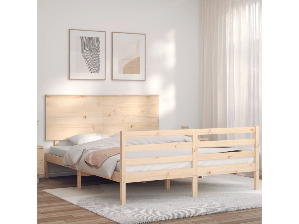 Rám postele s čelem King Size masivní dřevo 3195226