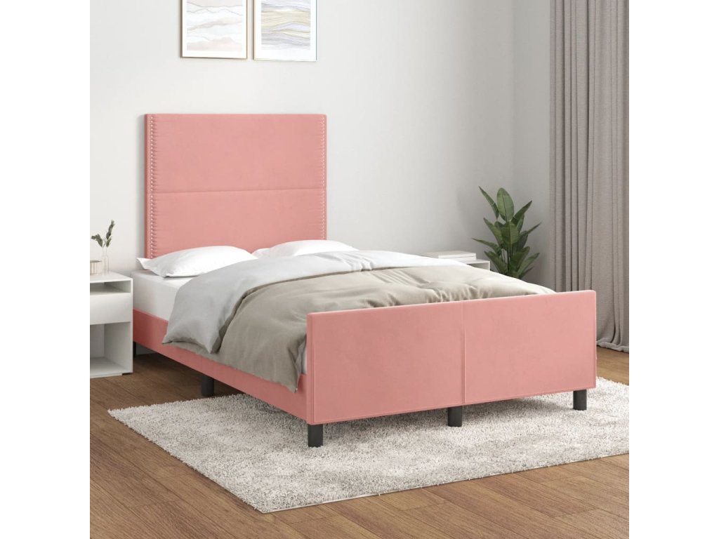 Rám postele s čelem růžový 120 x 200 cm samet 3125689