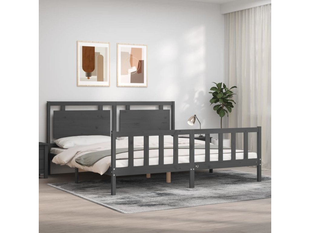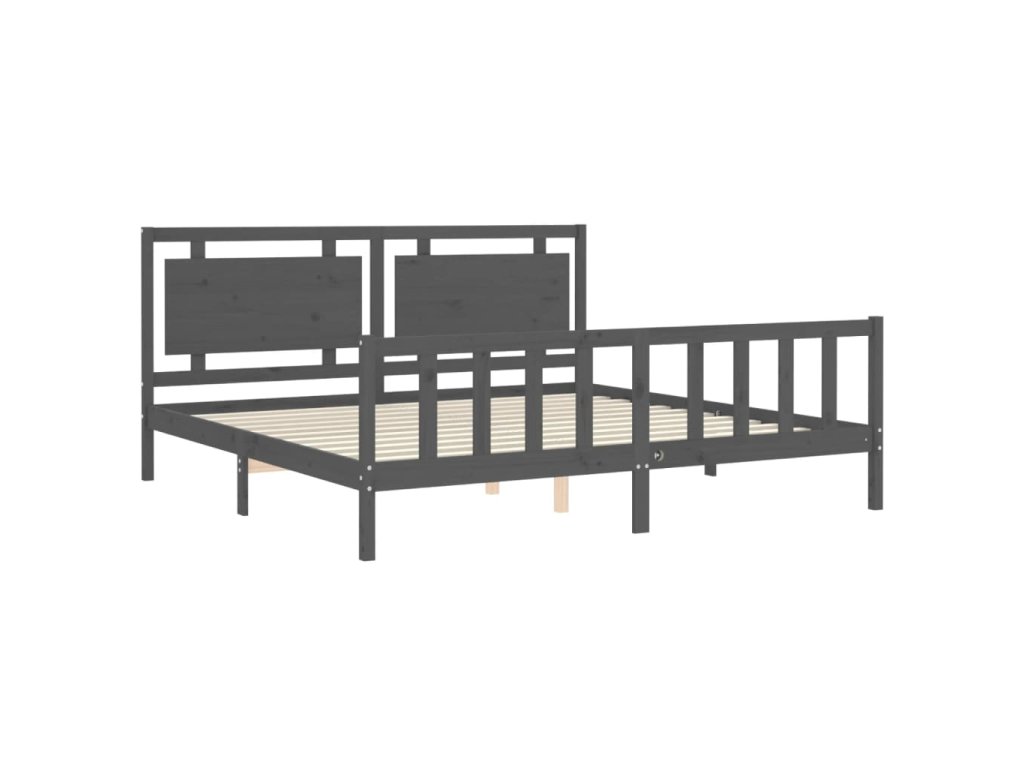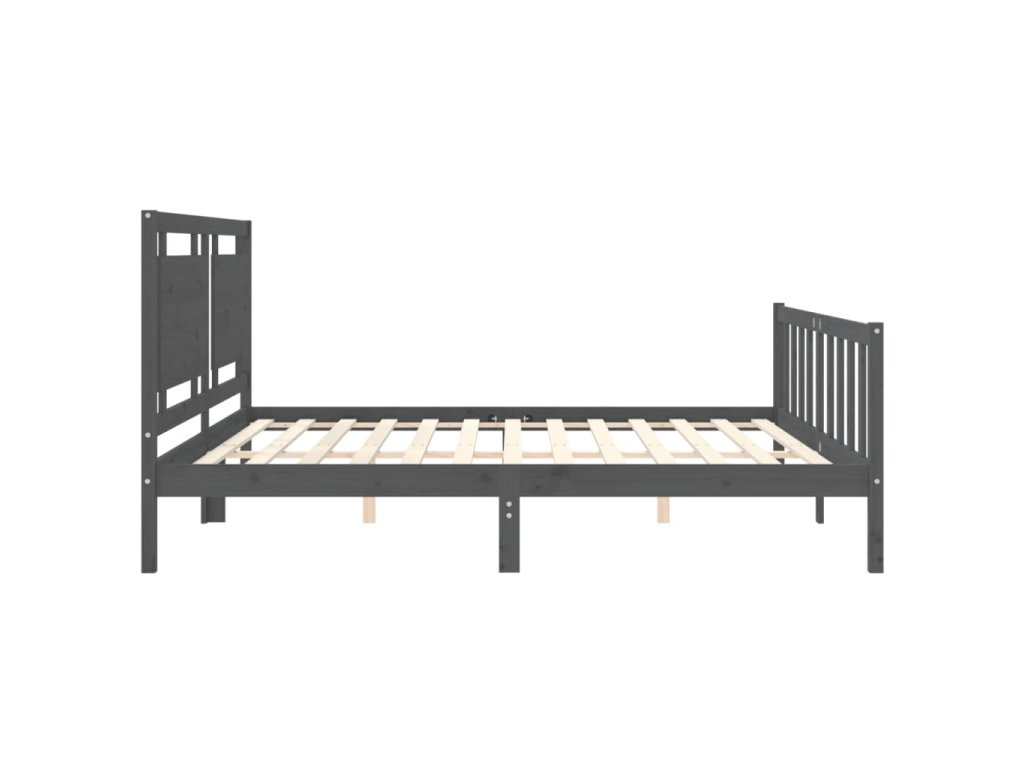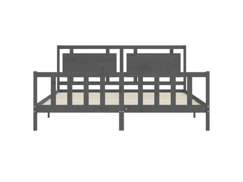 Rám postele s čelem šedý 200 x 200 cm masivní dřevo 3192188