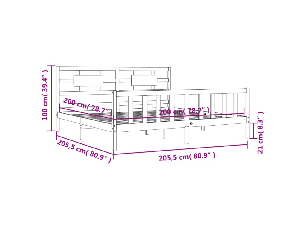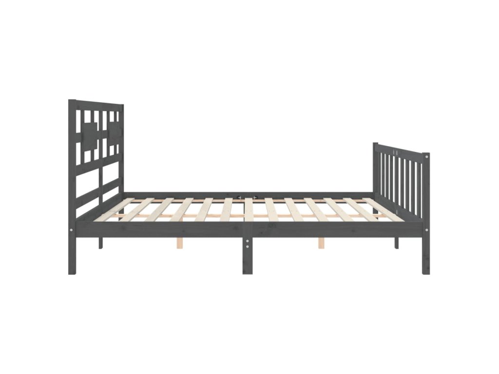 Rám postele s čelem šedý 200 x 200 cm masivní dřevo 3192578