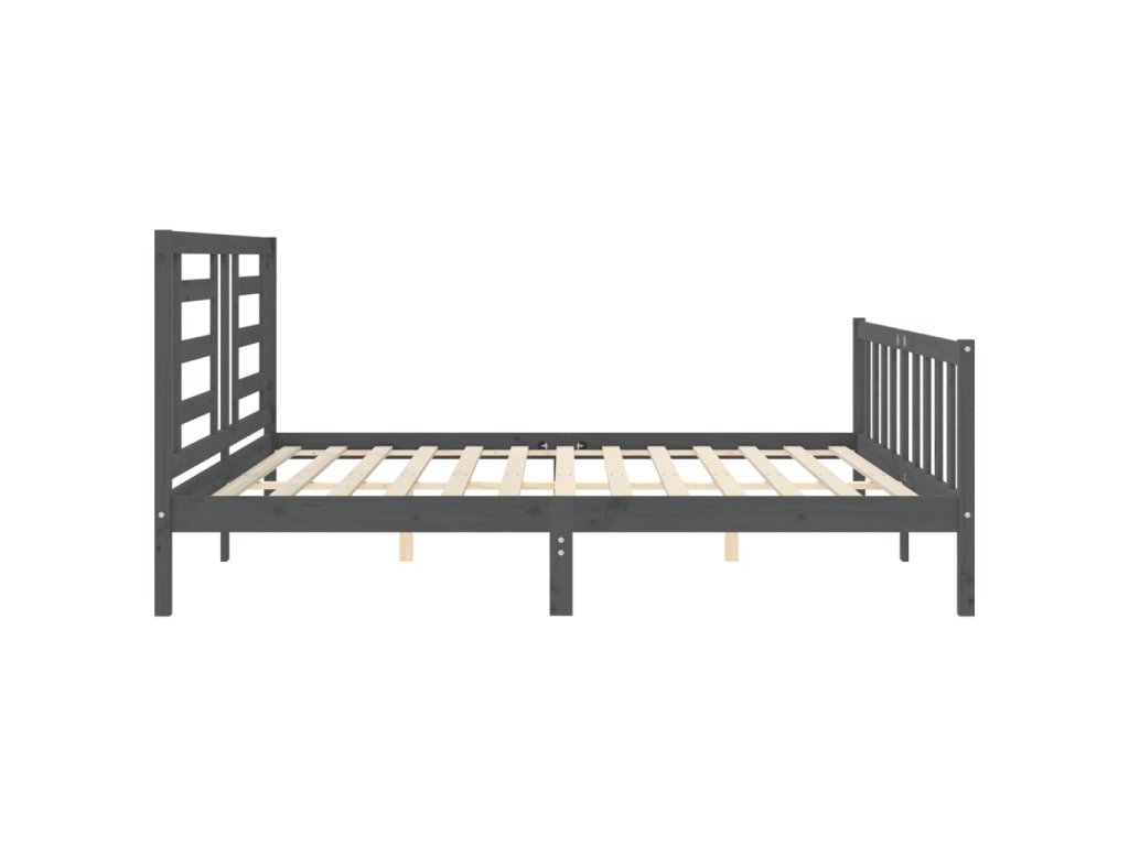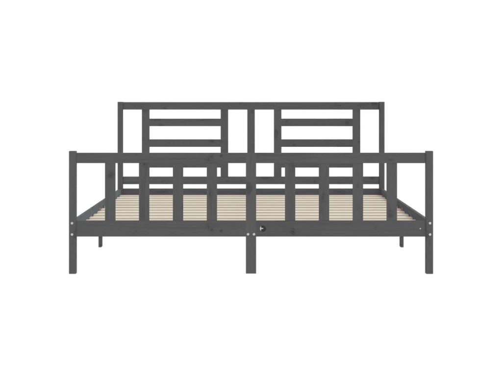 Rám postele s čelem šedý 200 x 200 cm masivní dřevo 3192903