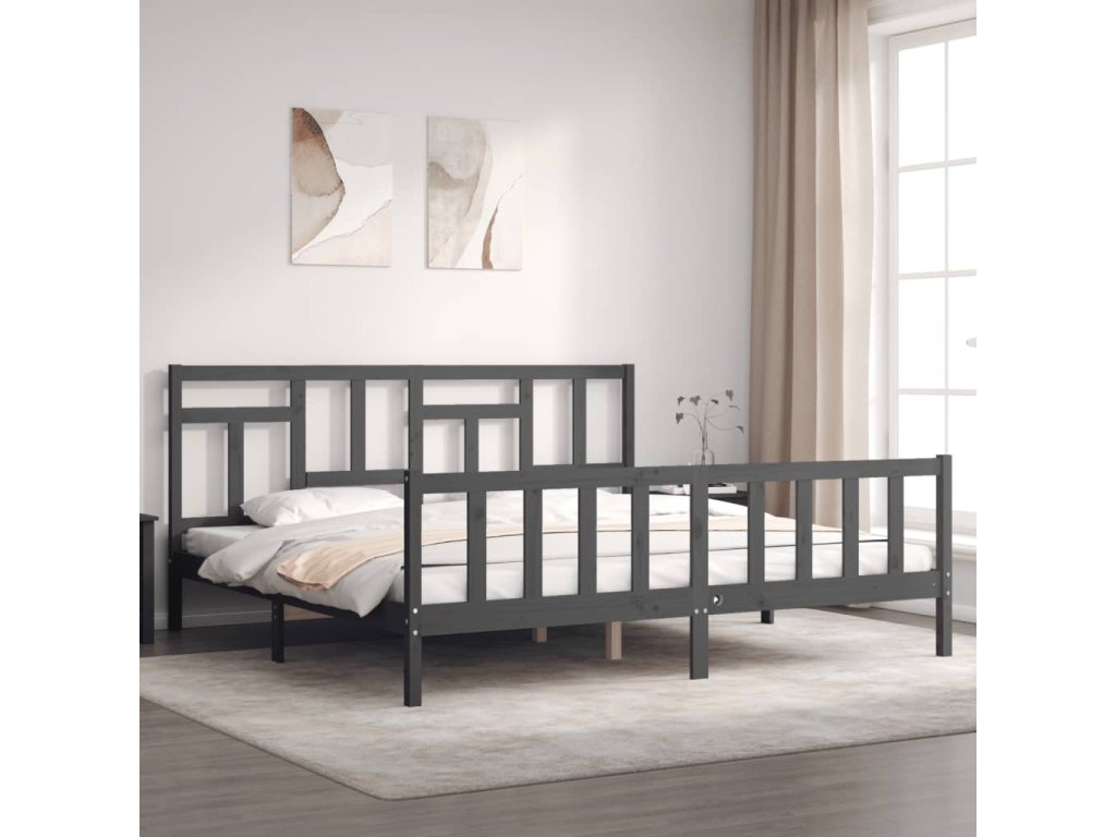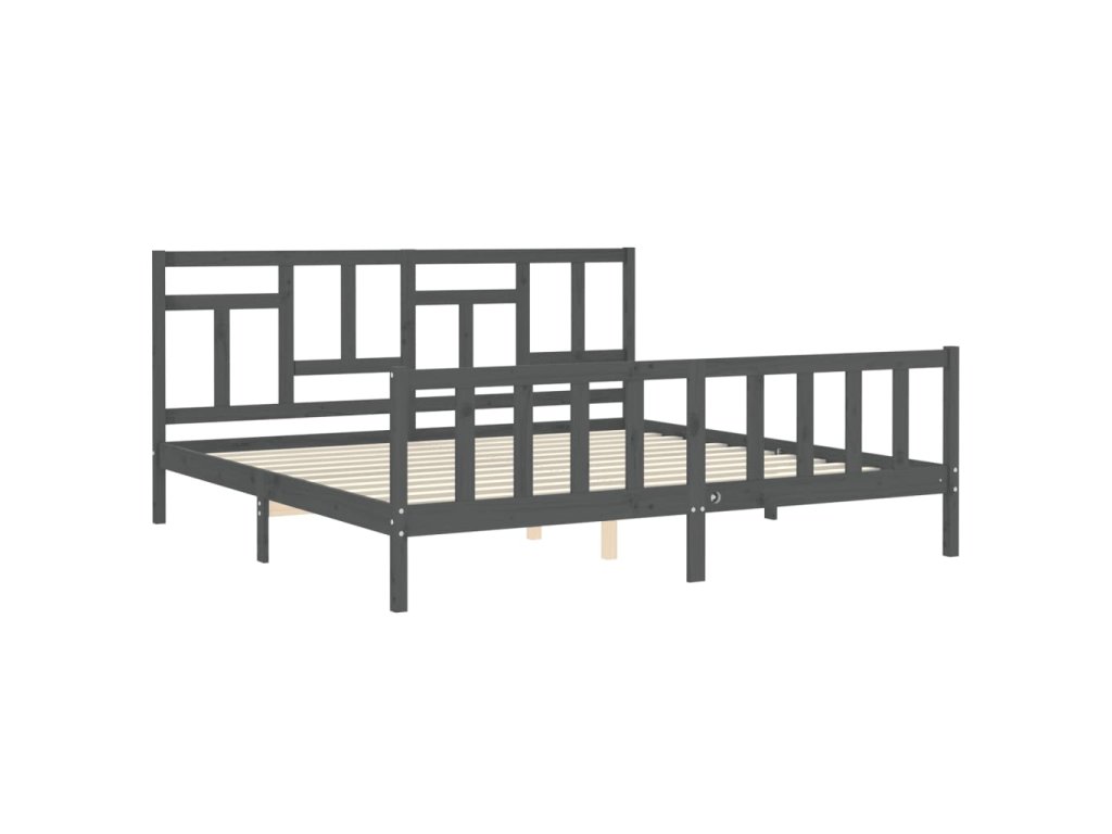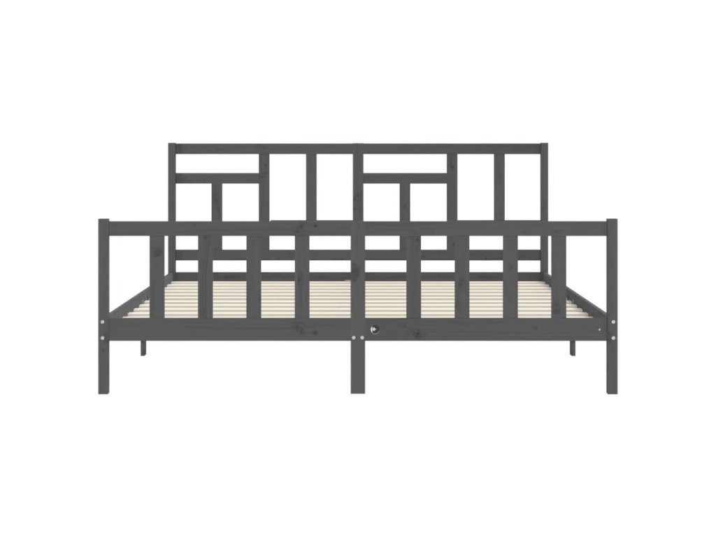 Rám postele s čelem šedý 200 x 200 cm masivní dřevo 3193163