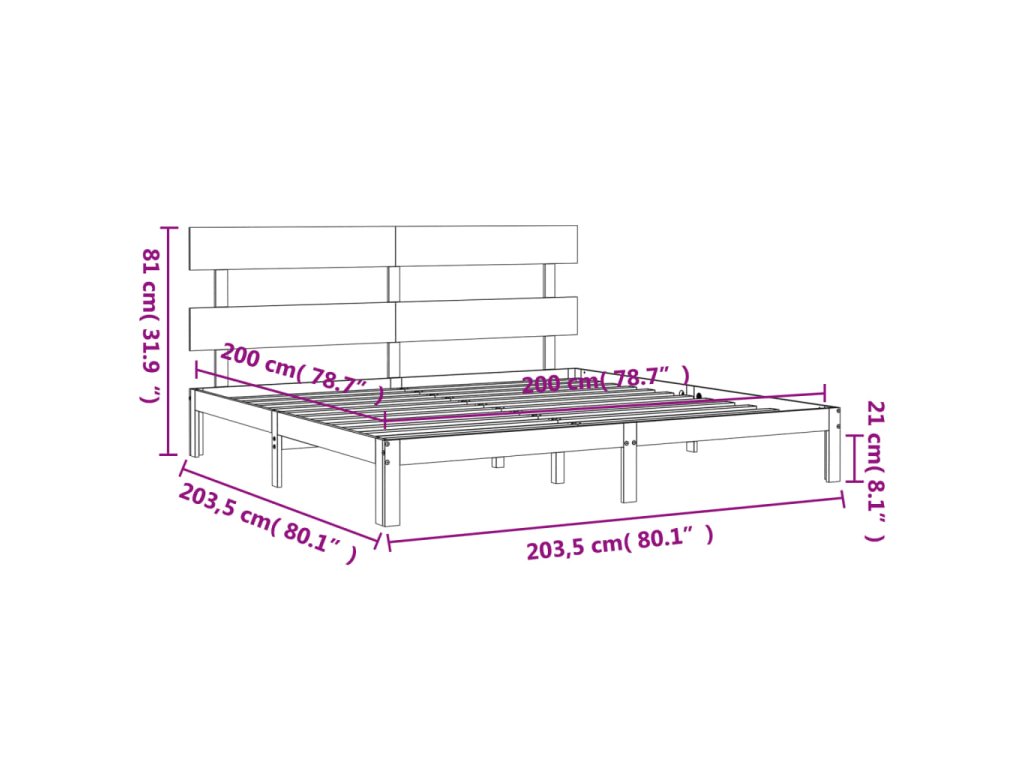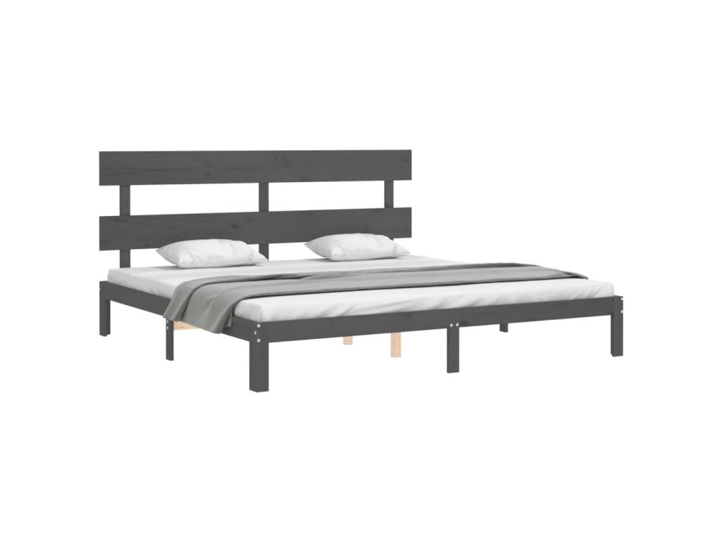 Rám postele s čelem šedý 200 x 200 cm masivní dřevo 3193553