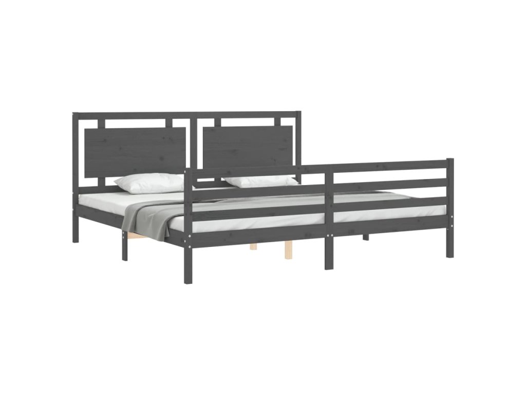 Rám postele s čelem šedý 200 x 200 cm masivní dřevo 3194073