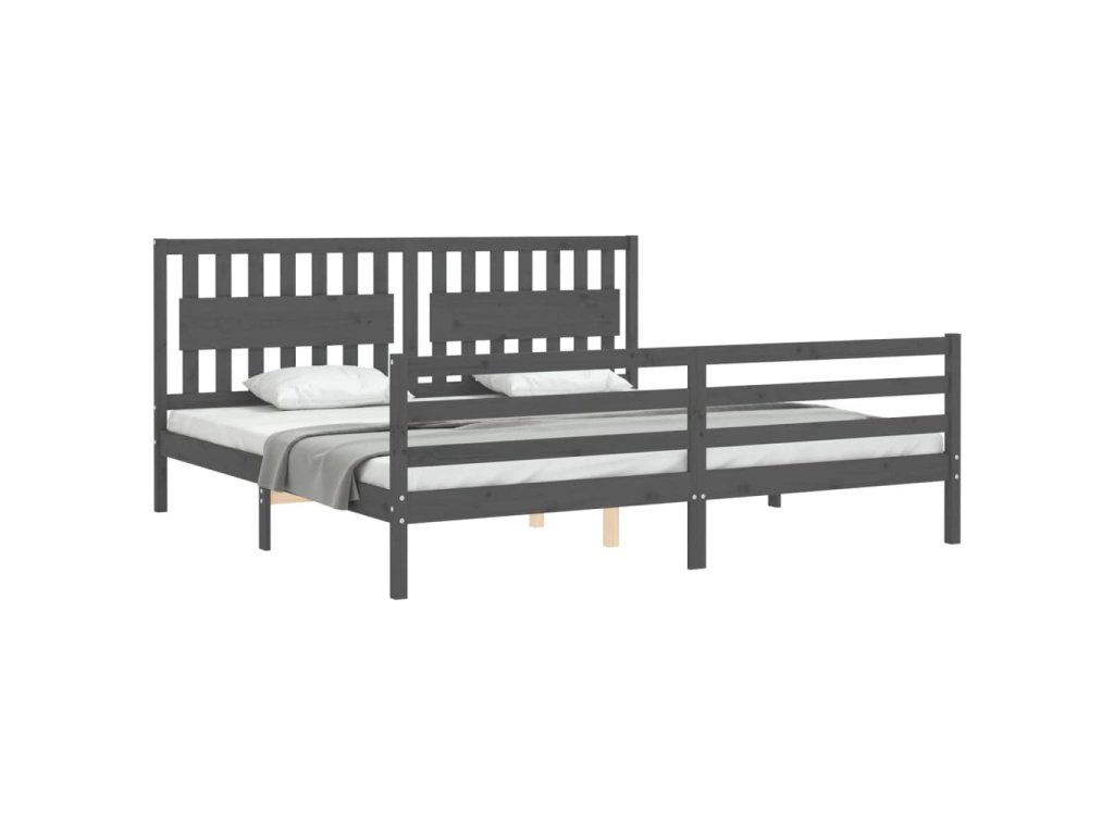 Rám postele s čelem šedý 200 x 200 cm masivní dřevo 3194333