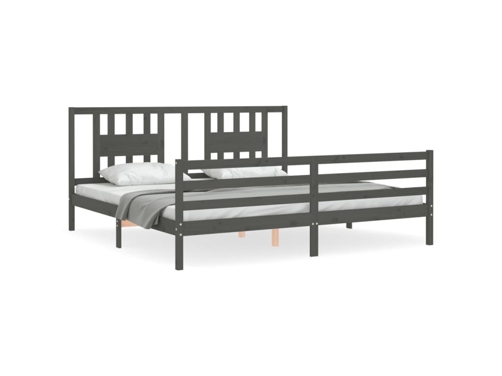 Rám postele s čelem šedý 200 x 200 cm masivní dřevo 3194593