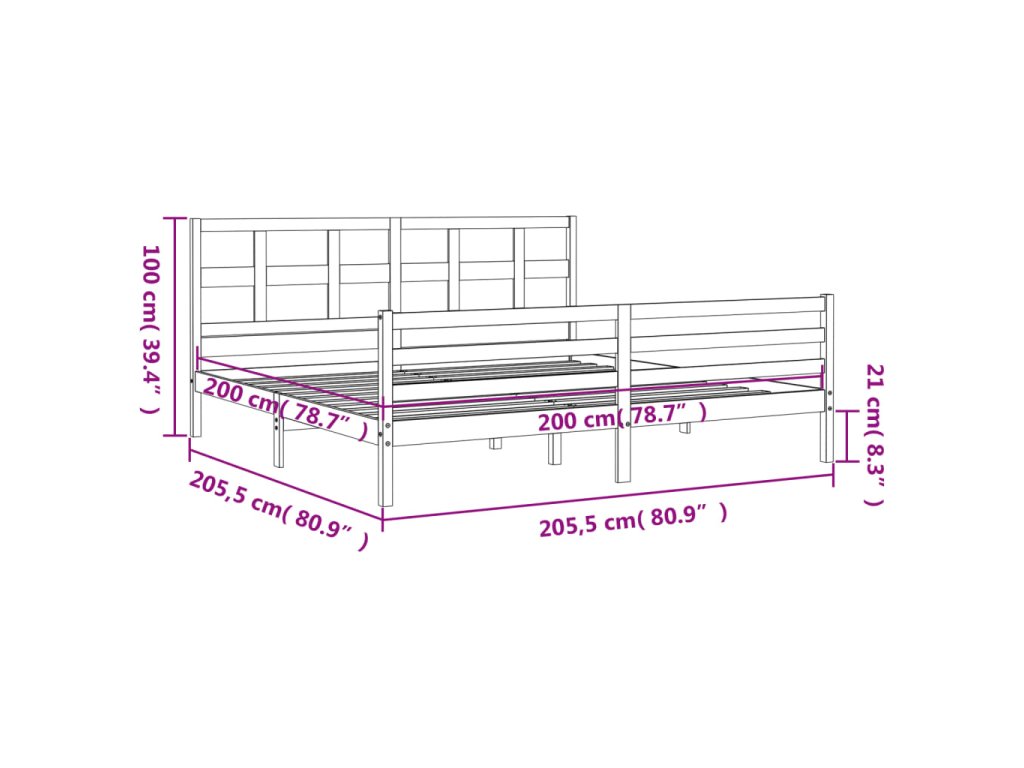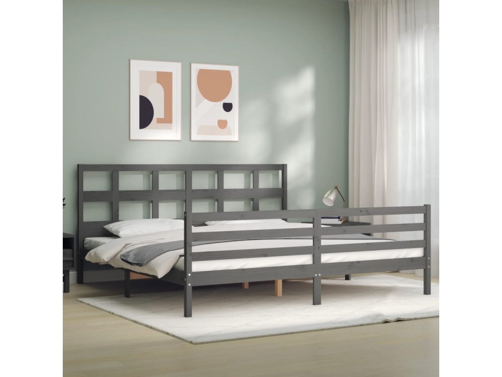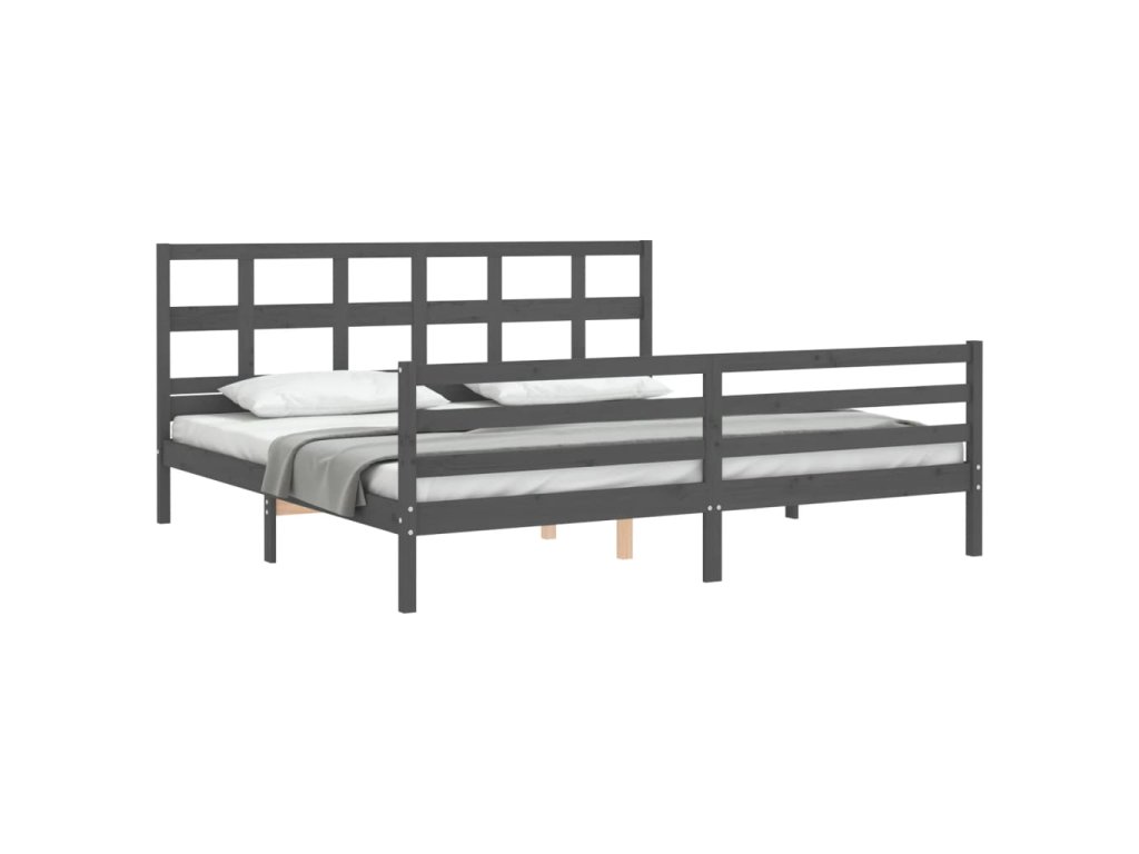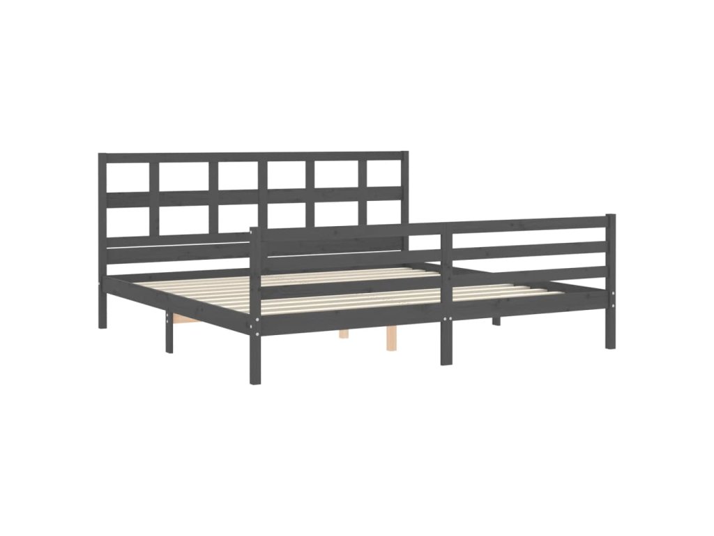 Rám postele s čelem šedý 200 x 200 cm masivní dřevo 3194853
