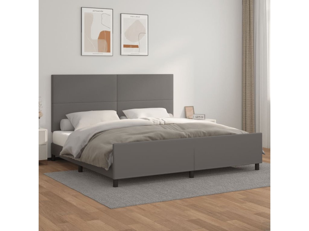 Rám postele s čelem šedý 200x200 cm umělá kůže 3125473