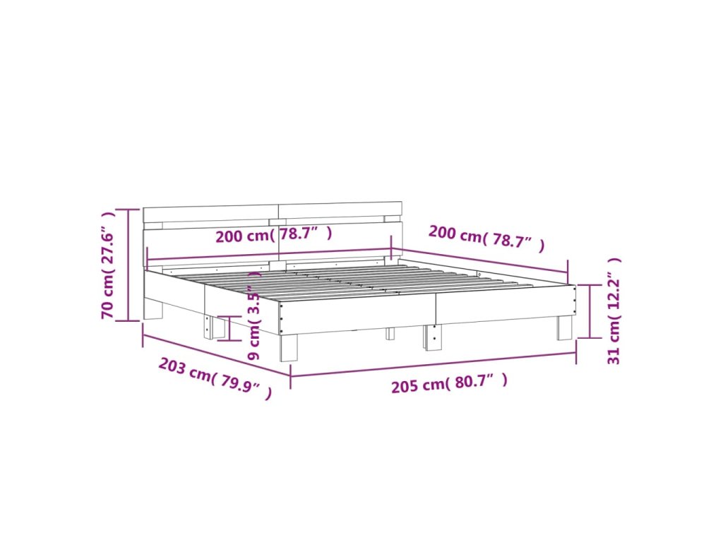 Rám postele s čelem šedý sonoma 200 x 200 cm kompozitní dřevo 3207397