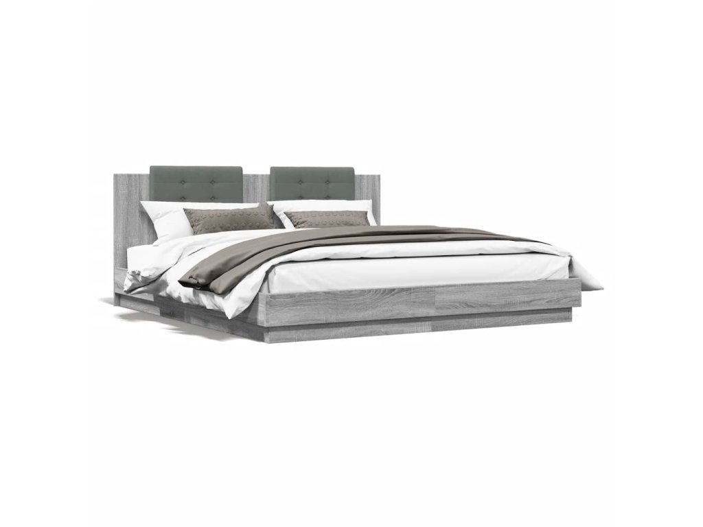 Rám postele s čelem šedý sonoma 200 x 200 cm kompozitní dřevo 3209896
