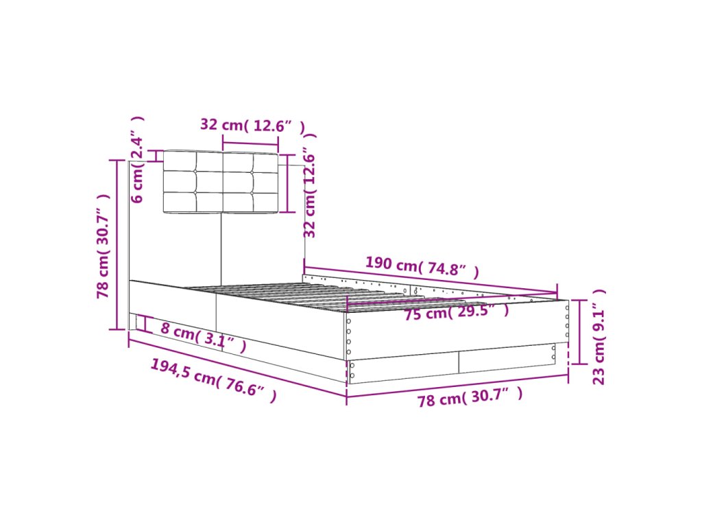 Rám postele s čelem šedý sonoma 75 x 190 cm kompozitní dřevo 3209980