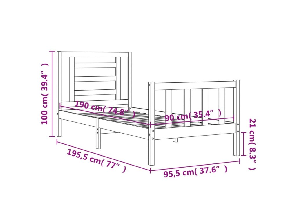 - Celkové rozměry postele: 195,5 x 95,5 x 100 cm (D x Š x V)