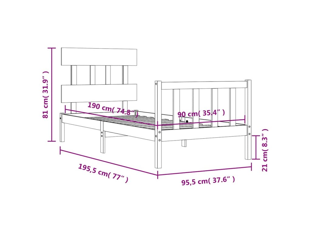 - Celkové rozměry postele: 195,5 x 95,5 x 81 cm (D x Š x V)