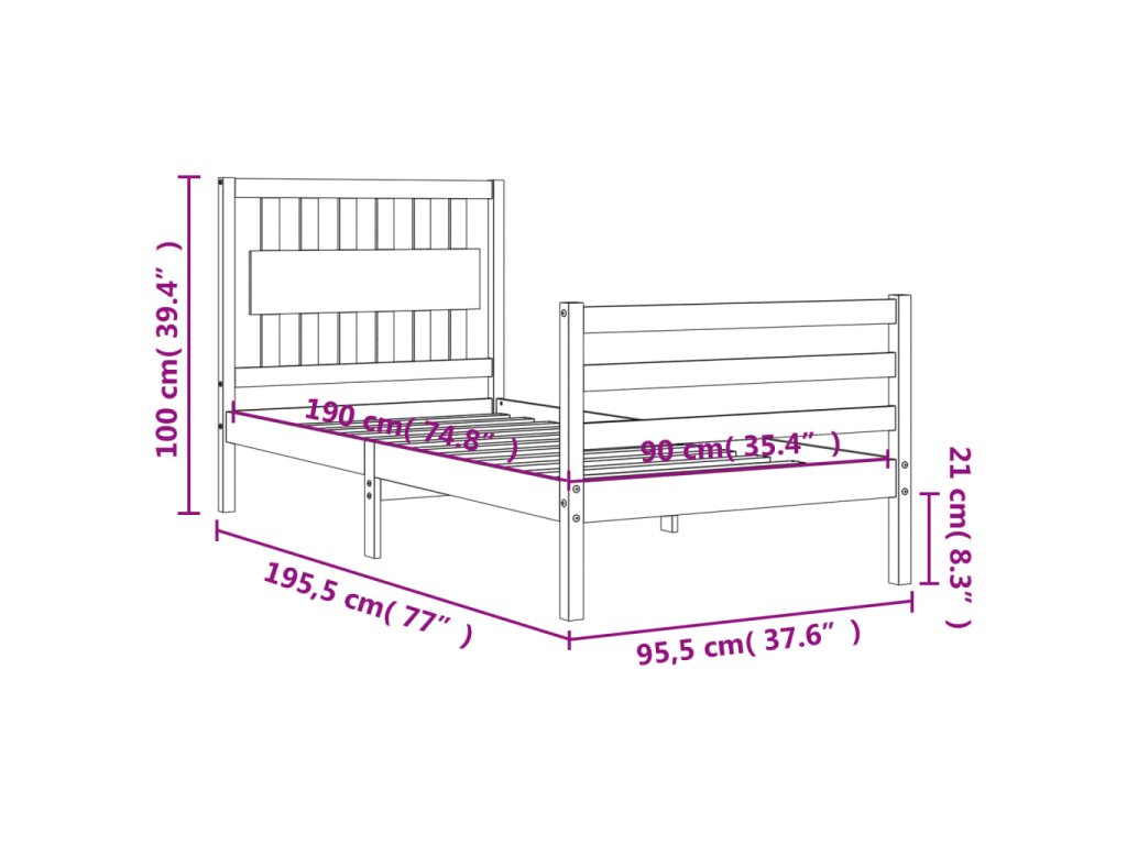- Celkové rozměry postele: 195,5 x 95,5 x 100 cm (D x Š x V)