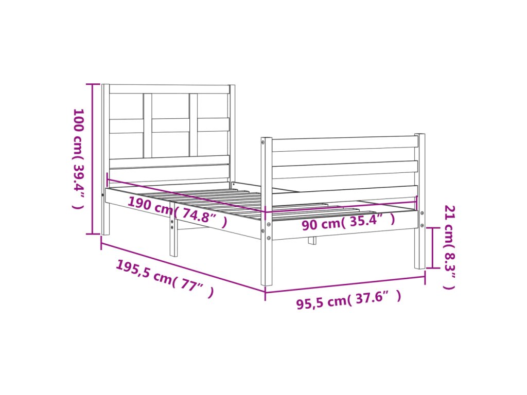 - Celkové rozměry postele: 195,5 x 95,5 x 100 cm (D x Š x V)