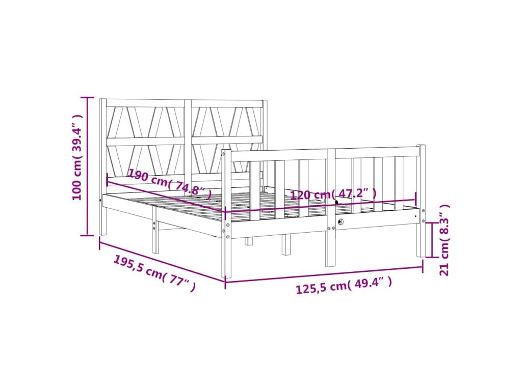 Rám postele s čelem Small Double masivní dřevo 3192461