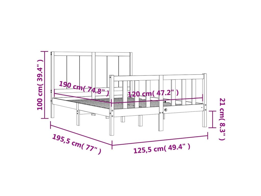 - Vhodné rozměry matrace (matrace není součástí balení): 120 x 190 cm (Š x D) (4FT Small Double)