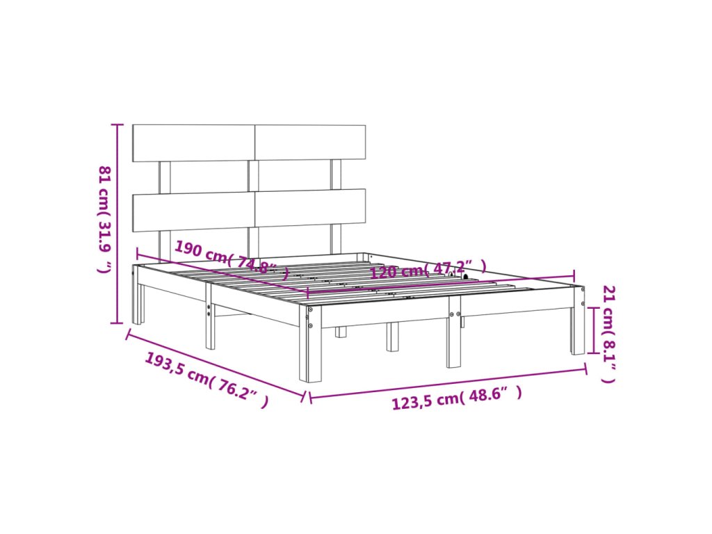 - Celkové rozměry postele: 193,5 x 123,5 x 81 cm (D x Š x V)
