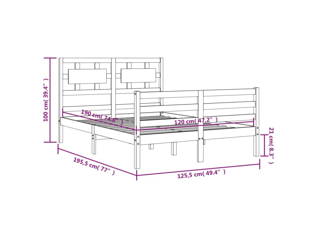 - Celkové rozměry postele: 195,5 x 125,5 x 100 cm (D x Š x V)