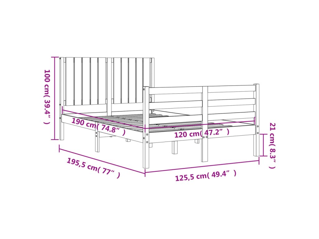 Rám postele s čelem Small Double masivní dřevo 3194736