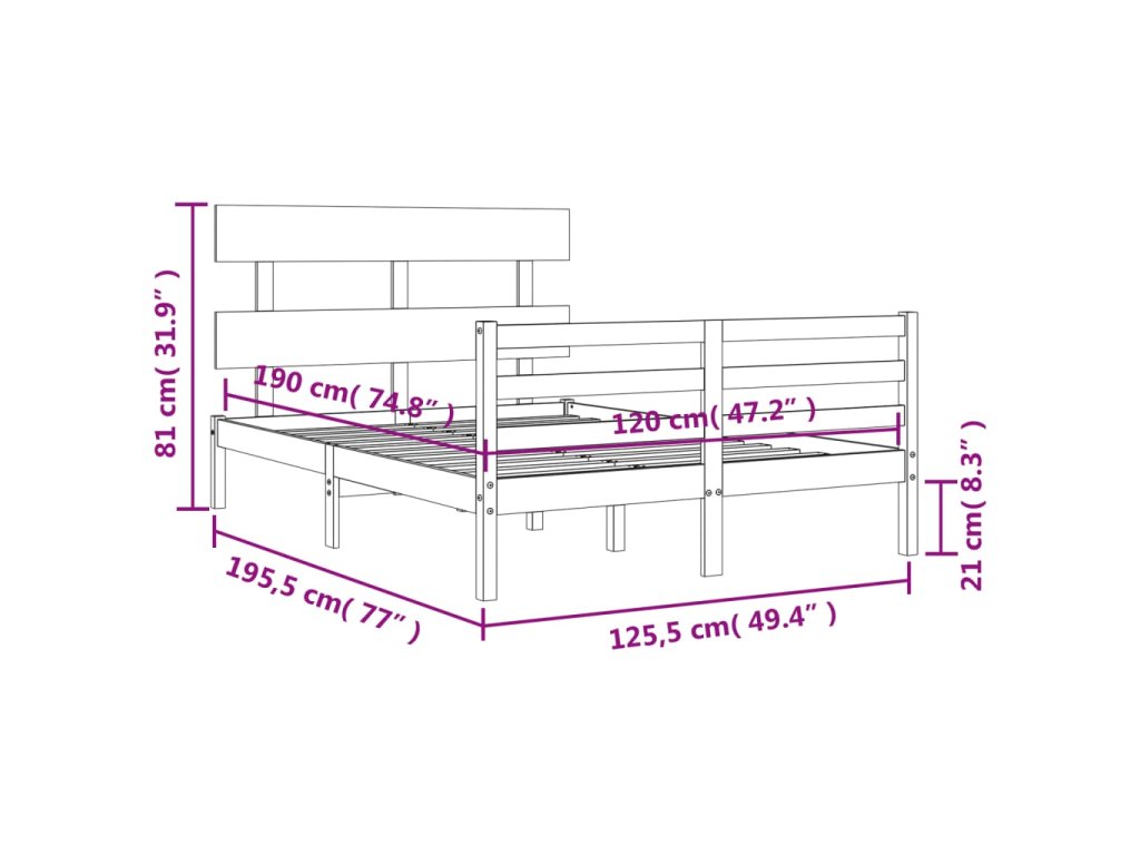 - Celkové rozměry postele: 195,5 x 125,5 x 81 cm (D x Š x V)