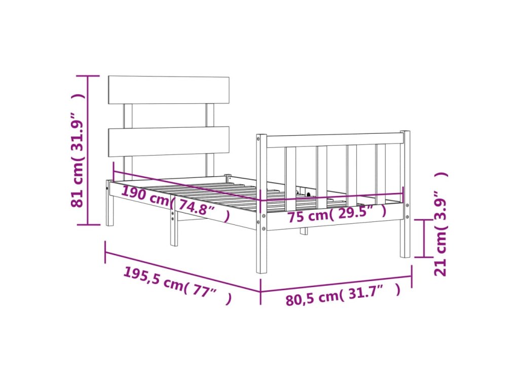 - Celkové rozměry postele: 195,5 x 80,5 x 81 cm (D x Š x V)
