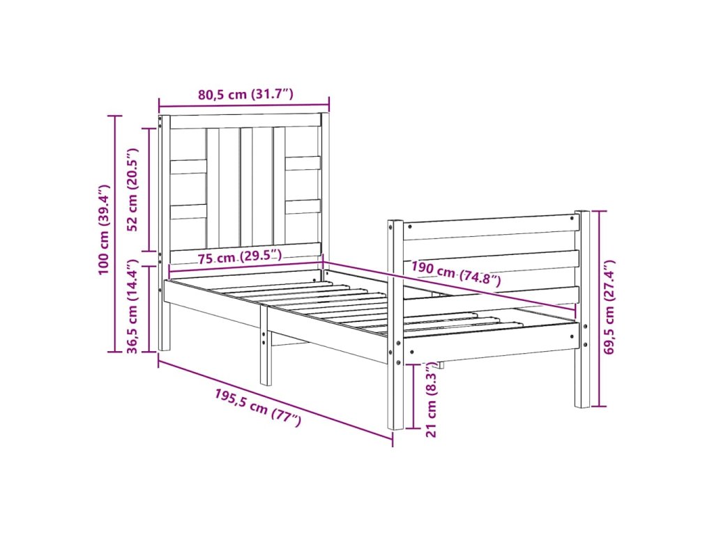 - Celkové rozměry postele: 195,5 x 80,5 x 100 cm (D x Š x V)