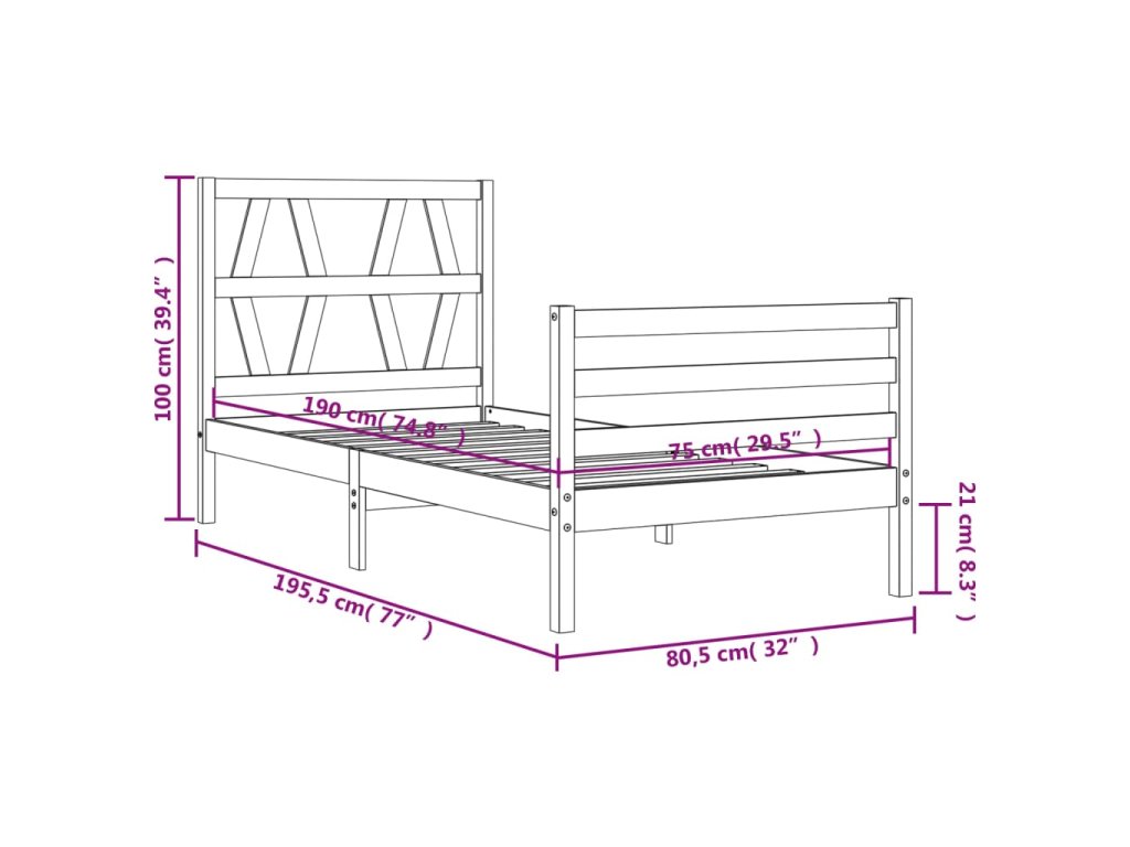 Rám postele s čelem Small Single masivní dřevo 3194336