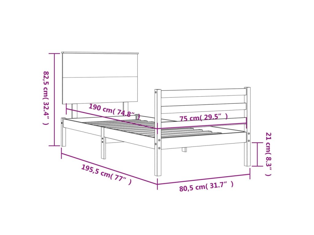 - Celkové rozměry postele: 195,5 x 80,5 x 82,5 cm (D x Š x V)