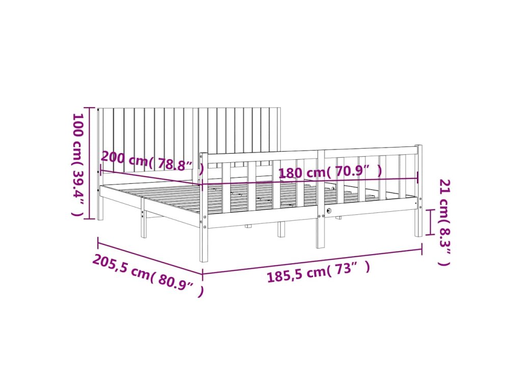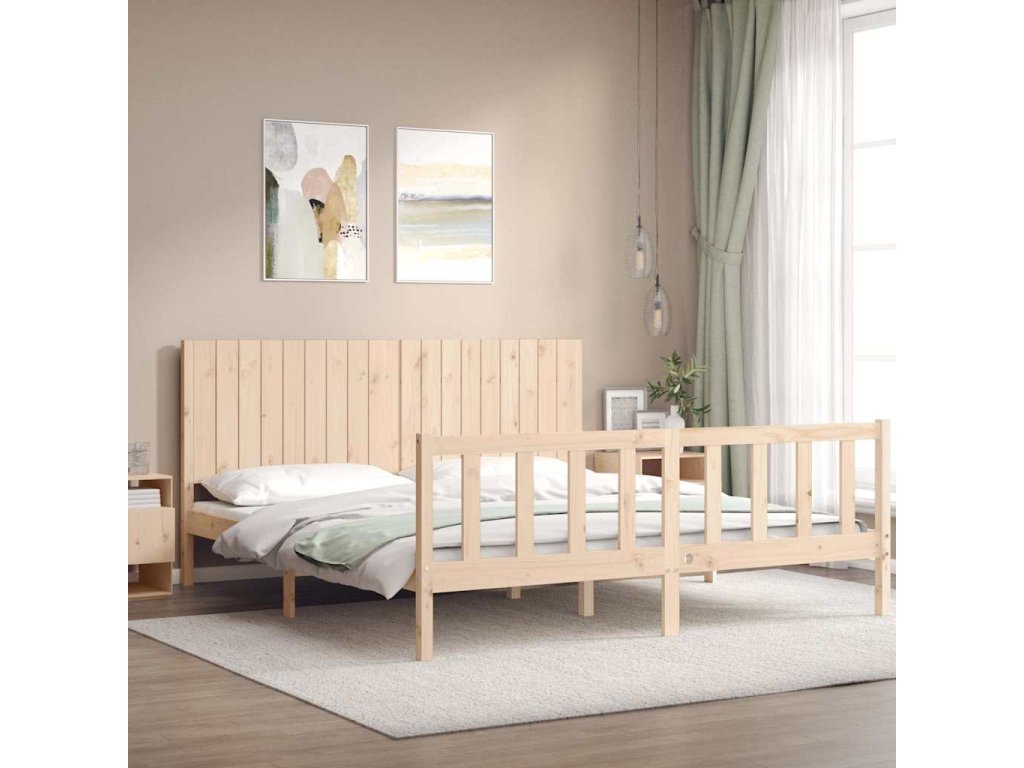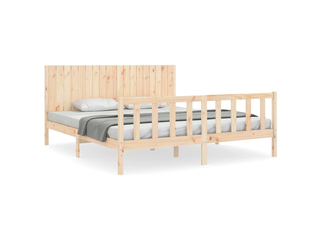 Rám postele s čelem Super King Size masivní dřevo 3192961