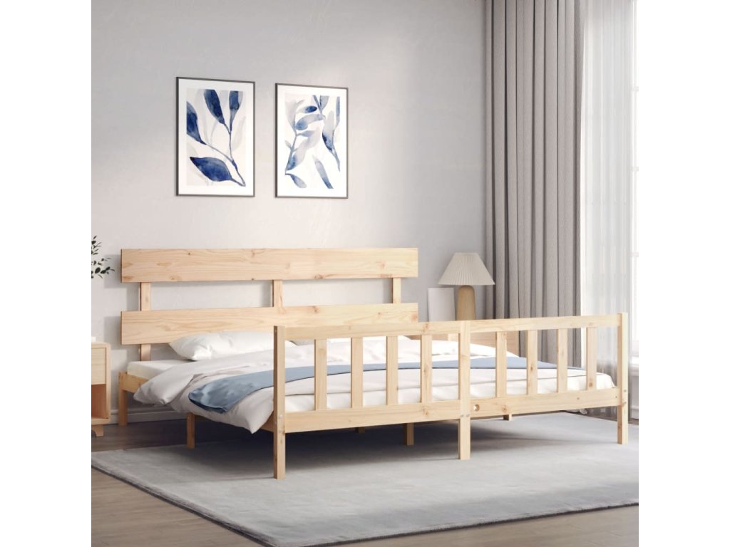 Rám postele s čelem Super King Size masivní dřevo 3193286
