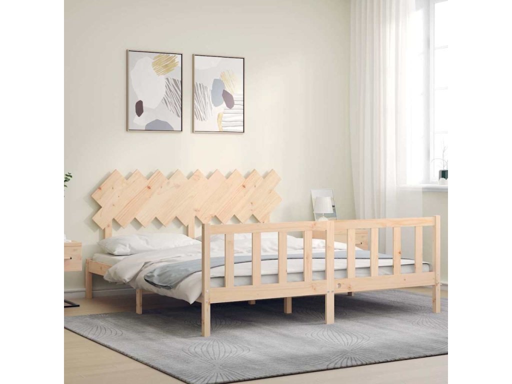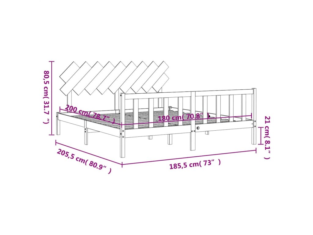 Rám postele s čelem Super King Size masivní dřevo 3193481