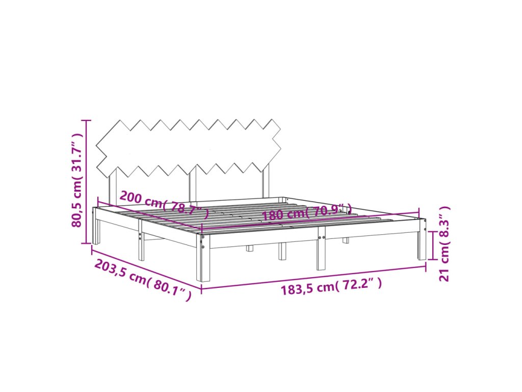 - Celkové rozměry postele: 203,5 x 183,5 x 80,5 cm (D x Š x V)